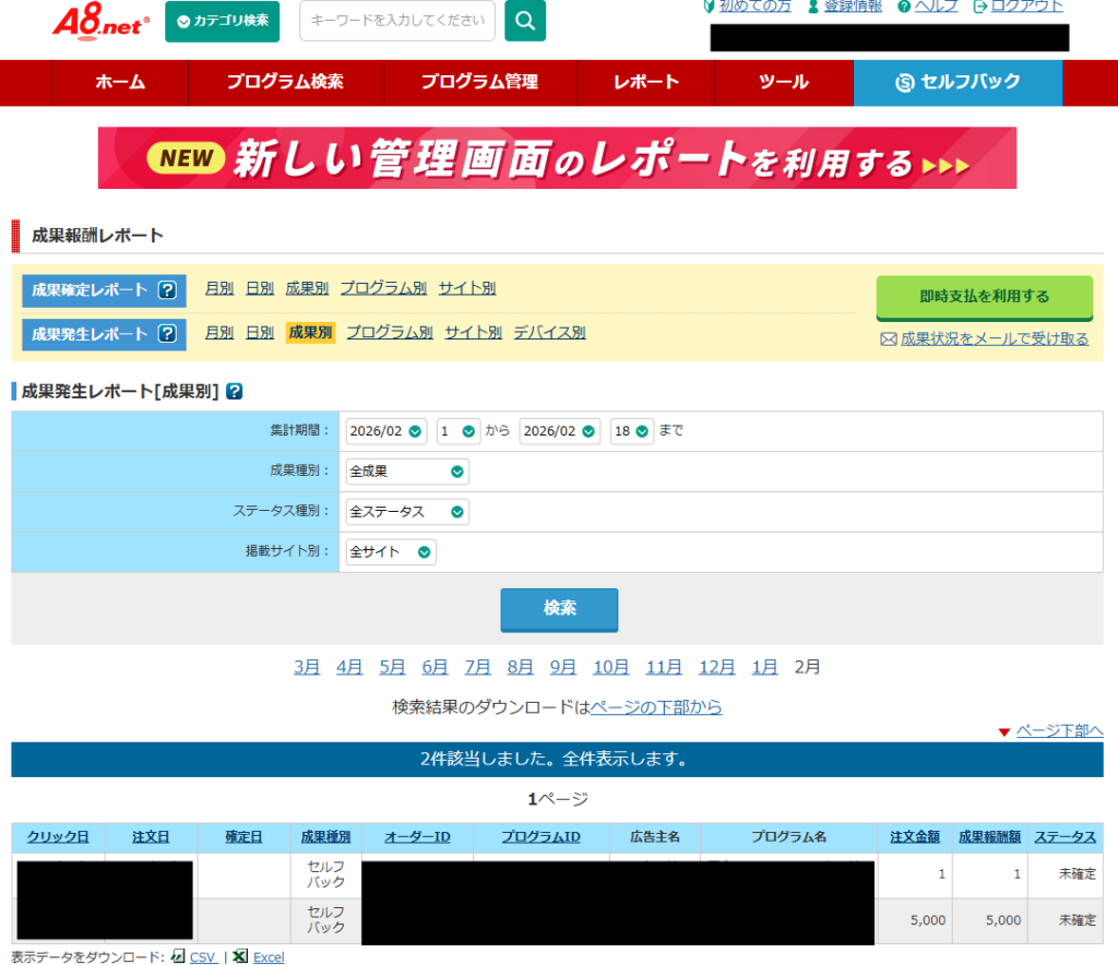 このブログのサーバーをセルフバックで契約したときの成果報酬です。