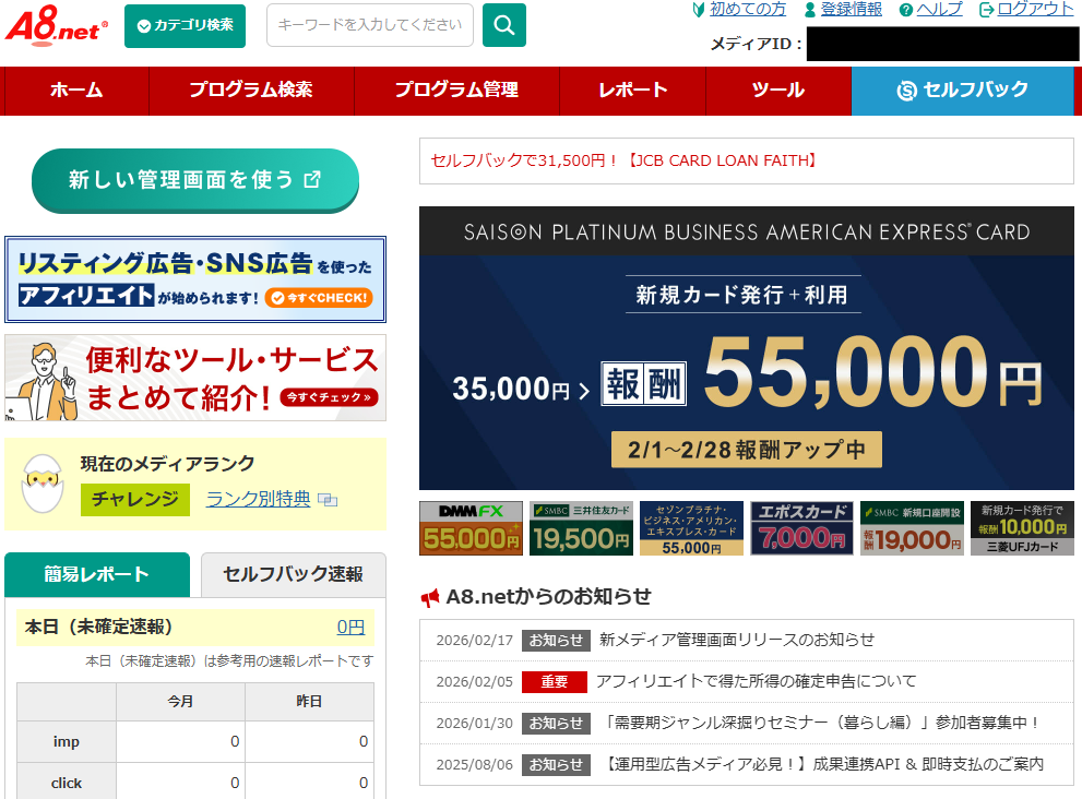 初心者で「まず体験してみたい」なら、操作が分かりやすいもしもアフィリエイト。