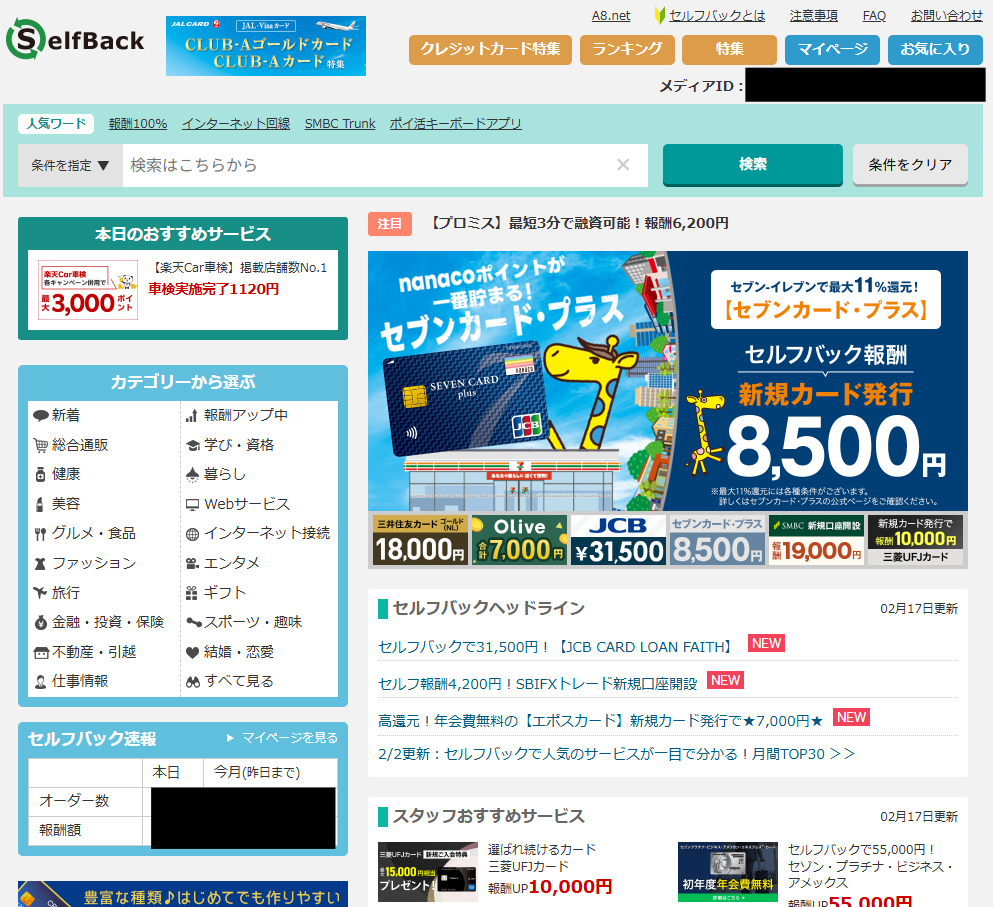 セルフバック専用のページがあり、そこから自分に合った案件を選ぶことで、