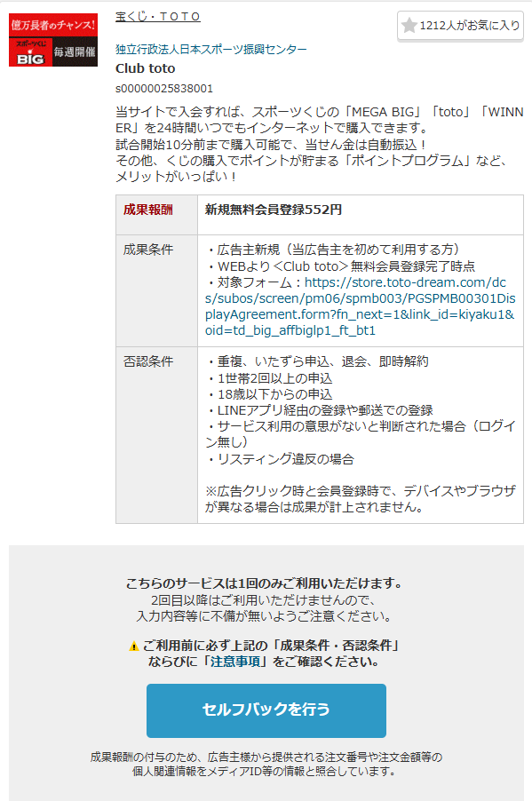 セルフバックでお得に商品を購入するという使い方もできそうだと感じました。